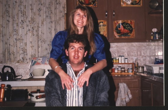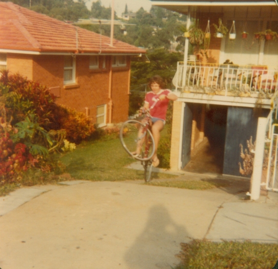 By this time John had moved into a house at Holland Park with an easy-going mate named Gary. It was a true bachelor pad complete with cockroaches crawling up the walls and a front lawn so long you could get lost in it. I remember one of the first times I visited John there, Gary was doing donuts in the front yard on his motorbike. I asked him what he was doing. He replied it was his turn to mow the lawn. Clearly these poor men needed a woman to survive, so the 3 of us moved in together, renting a house in Chilton Street at Sunnybank Hills in 1986. We all lived together til 1993, with a young woman named Angie joining us as Gary’s partner.